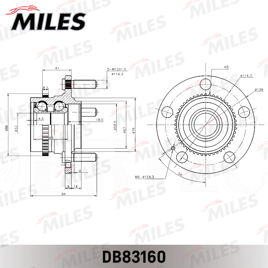 DB83160 MILES Ступица колеса задняя с подшипником с ABS HYUNDAI TUCSON I/KIA SPORTAGE II 04- (