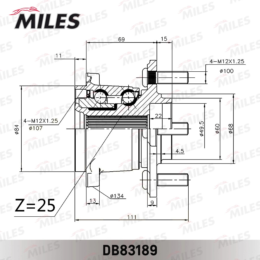 DB83189 MILES Ступица колеса с подшипником NISSAN MARCH/NOTE/TIIDA зад.4WD DB83189