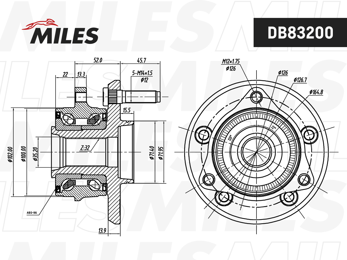 DB83200 MILES Ступица колеса передняя с подшипником с ABS (5*127,Z32) JEEP GRAND CHEROKEE IV (