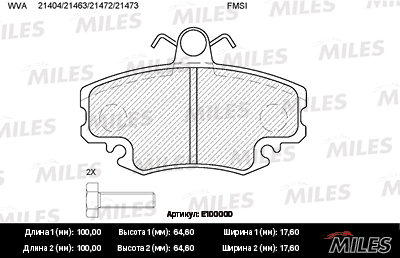 E100000 MILES Колодки тормозные передние (с датчиком) (Смесь Semi-Metallic) RENAULT LOGAN 04-/
