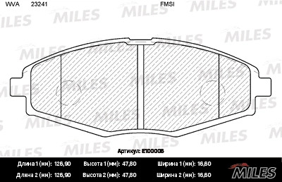 E100006 MILES Колодки тормозные передние (без датчика) (Смесь Semi-Metallic) DAEWOO NEXIA/LANO