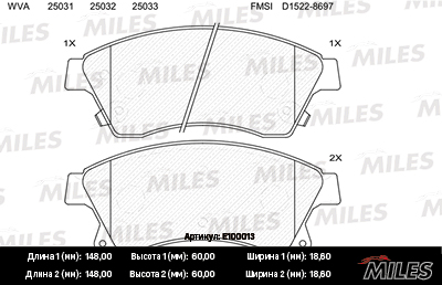 E100013 MILES Колодки тормозные передние (без датчика) (Смесь Semi-Metallic) CHEVROLET CRUZE/O