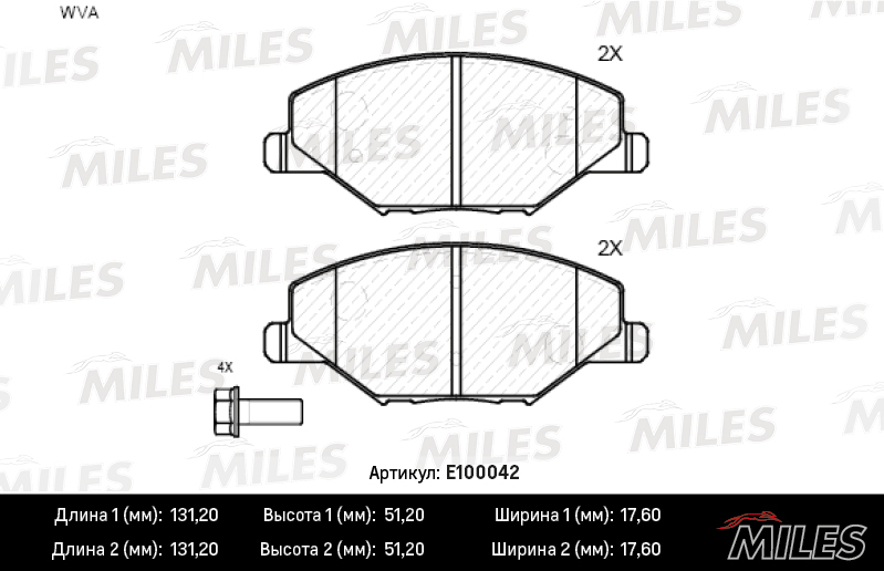 E100042 MILES Колодки тормозные передние (без датчика) (Смесь Semi-Metallic) (VW POLO (RUS) 11