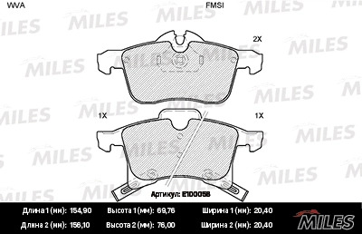 E100058 MILES Колодки тормозные передние (без датчика) (Смесь Semi-Metallic) OPEL ASTRA G/H/ZA