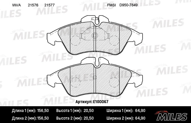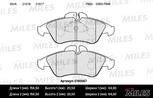 E100067 MILES Колодки тормозные передние (без датчика) (Смесь Semi-Metallic) MERCEDES SPRINTER