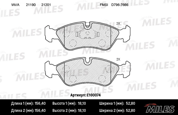 E100074 MILES Колодки тормозные передние (без датчика) (Смесь Semi-Metallic) OPEL VECTRA A/B/D