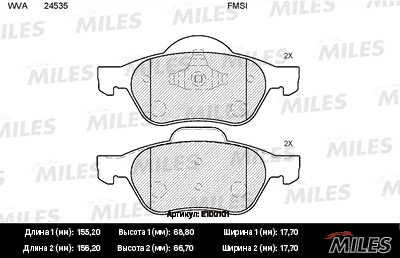E100101 MILES Колодки тормозные передние (без датчика) (Смесь Semi-Metallic) RENAULT MEGANE II