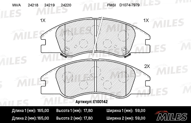 E100142 MILES Колодки тормозные передние (без датчика) (Смесь Semi-Metallic) (KIA CERATO (LD),