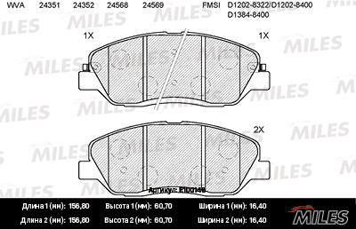 E100148 MILES Колодки тормозные передние (без датчика) (Смесь Semi-Metallic) (HYUNDAI SANTA FE