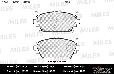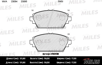 E100158 MILES Колодки тормозные передние (без датчика + болты) (Смесь Semi-Metallic) NISSAN PR