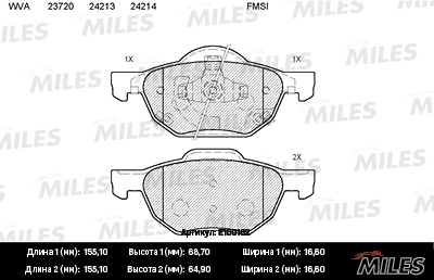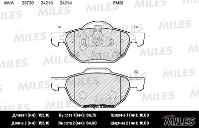 E100162 MILES Колодки тормозные передние (без датчика) (Смесь Semi-Metallic) HONDA ACCORD 2.0/