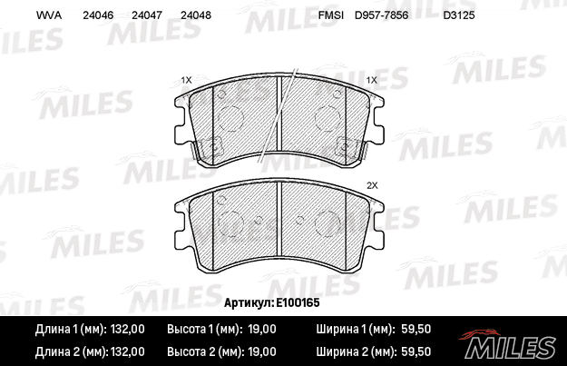 E100165 MILES Колодки тормозные передние (без датчика) с индикатором износа (Смесь Semi-Metall
