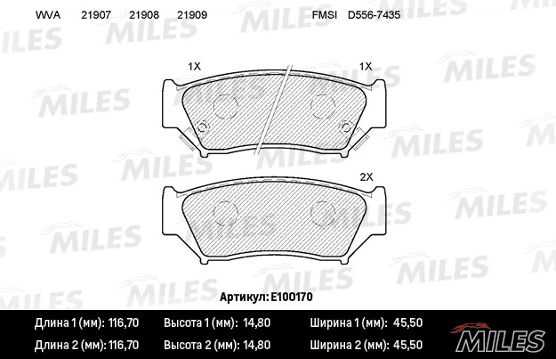 E100170 MILES Колодки тормозные передние (без датчика) (Смесь Semi-Metallic) SUZUKI GRAND VITA
