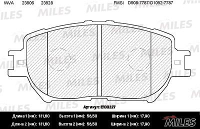 E100227 MILES Колодки тормозные передние (без датчика) (Смесь Semi-Metallic) (TOYOTA CAMRY (_V