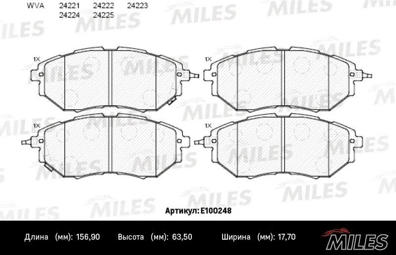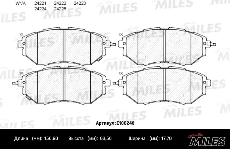 E100248 MILES Колодки тормозные передние (без датчика) (Смесь Semi-Metallic) (SUBARU LEGACY/OU