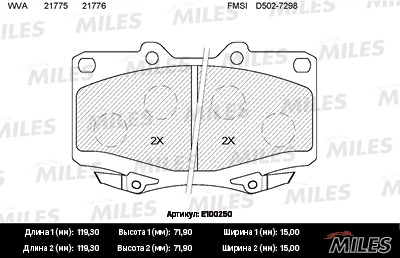 E100250 MILES Колодки тормозные передние (без датчика) (Смесь Semi-Metallic) (TOYOTA LAND CRUI
