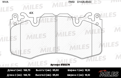 E100274 MILES Колодки тормозные передние (без датчика) (Смесь Semi-Metallic) (LR DISCOVERY/ RA