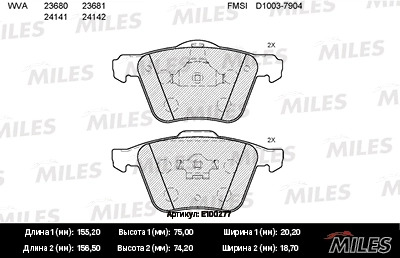 E100277 MILES Колодки тормозные передние (без датчика) (Смесь Semi-Metallic) (VOLVO XC90 02) (