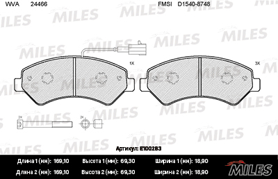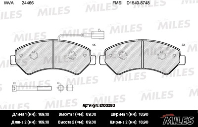 E100283 MILES Колодки тормозные передние (с датчиком + болты) (Смесь Semi-Metallic) (CITROEN J