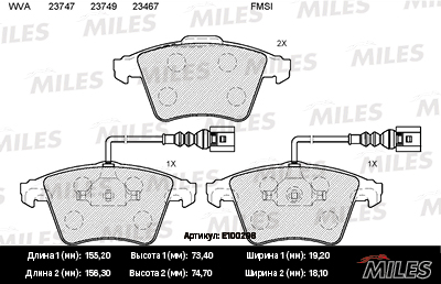E100298 MILES Колодки тормозные передние (с датчиком) (Смесь Semi-Metallic) (VW TOUAREG R16 03