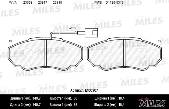 E100307 MILES Колодки тормозные передние (с датчиком + болты) (Смесь Semi-Metallic) (CITROEN J