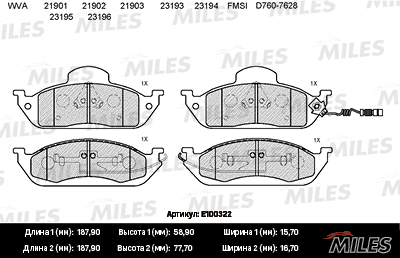 E100322 MILES Колодки тормозные передние (с датчиком) (Смесь Semi-Metallic) (MB W163 ML230-ML4