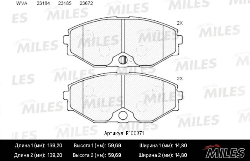 E100371 MILES Колодки тормозные передние (Смесь Semi-Metallic) NISSAN MAXIMA QX (A33) 2.0-3.0