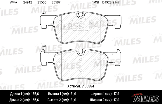 E100384 MILES Колодки тормозные передние (Смесь Semi-Metallic) BMW 1 F20/21 /3 F30/34/35 /4 F3
