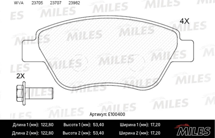 E100400 MILES Колодки тормозные передние (Смесь Semi-Metallic) FIAT ALBEA 01-09 (TRW GDB1579)