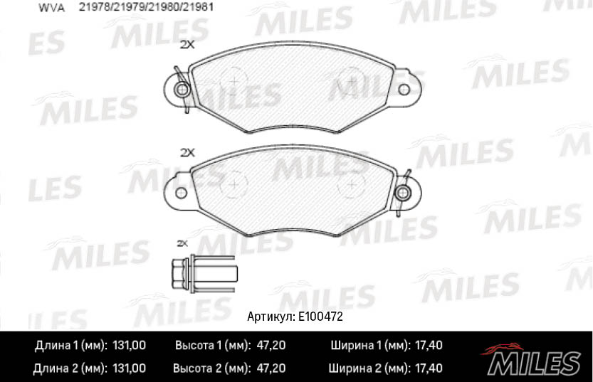 E100472 MILES Колодки тормозные передние (Смесь Semi-Metallic) NISSAN KUBISTAR 03-/RENAULT KAN