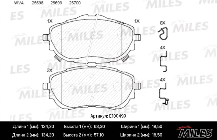 E100499 MILES Колодки тормозные передние (Смесь Semi-Metallic) TOYOTA AURIS 12-/COROLLA 13- (T