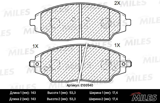 E100540 MILES Колодки тормозные передние (Смесь Semi-Metallic) CHEVROLET AVEO 11-/COBALT 13- (