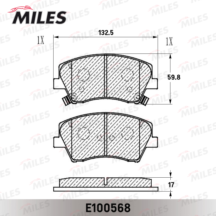 E100568 MILES Колодки тормозные передние (Смесь Semi-Metallic) HYUNDAI ELANTRA 17- (TRW GDB220
