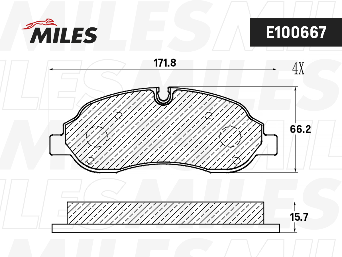 E100667 MILES Колодки тормозные передние (Смесь Semi-Metallic) FORD TRANSIT 13- (для сдвоенных