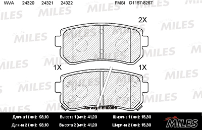 E110009 MILES Колодки тормозные задние (без датчика) (Смесь Semi-Metallic) HYUNDAI ACCENT/i20/