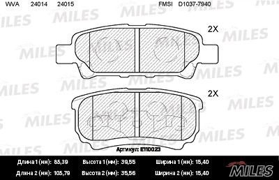 E110023 MILES Колодки тормозные задние (без датчика) (Смесь Semi-Metallic) MITSUBISHI LANCER I