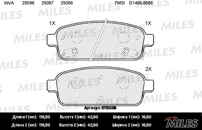 E110056 MILES Колодки тормозные задние (без датчика) (Смесь Semi-Metallic) (CHEVROLET CRUZE (J