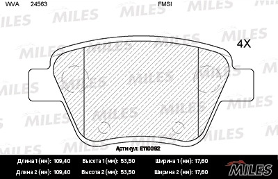 E110092 MILES Колодки тормозные задние (без датчика + болты) (Смесь Semi-Metallic) (VW GOLF VI