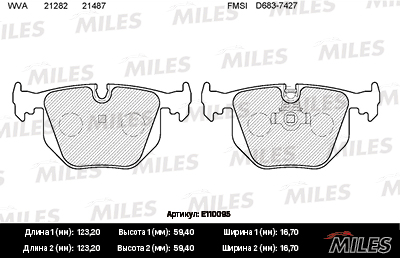 E110095 MILES Колодки тормозные задние (без датчика) (Смесь Semi-Metallic) BMW X3 E83/X5 E53/3