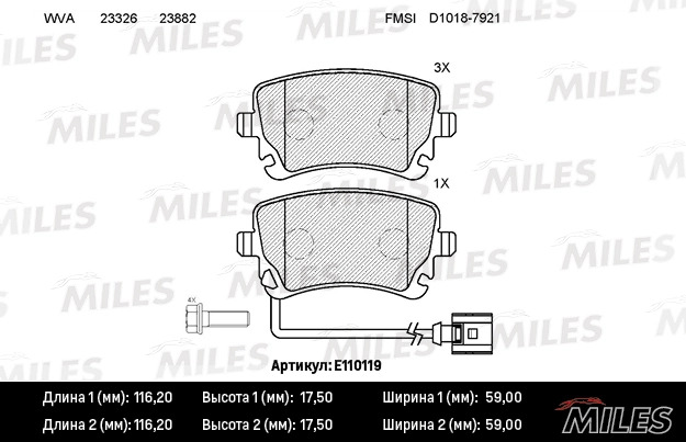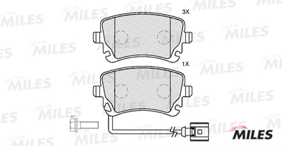 E110119 MILES Колодки тормозные задние с датчиком (Смесь Semi-Metallic) VOLKSWAGEN T5 03/MULTI