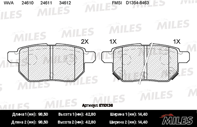 E110136 MILES Колодки тормозные задние (без датчика) (Смесь Semi-Metallic) TOYOTA COROLLA 1.4