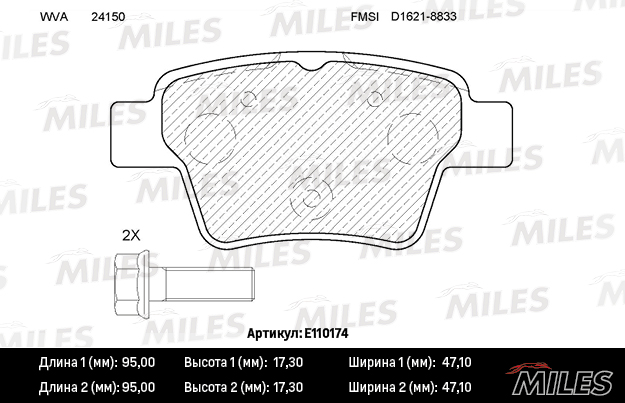 E110174 MILES Колодки тормозные задние (без датчика + болты) (Смесь Semi-Metallic) CITROEN C4