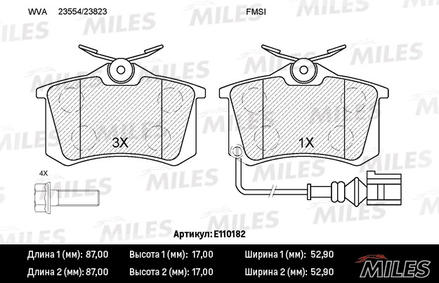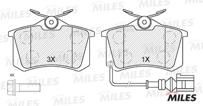 E110182 MILES Колодки тормозные задние с датчиком (Смесь Semi-Metallic) SEAT IBIZA 02-/SKODA F
