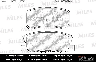 E110184 MILES Колодки тормозные задние (без датчика) (Смесь Semi-Metallic) PEUGEOT 4007/MITSUB