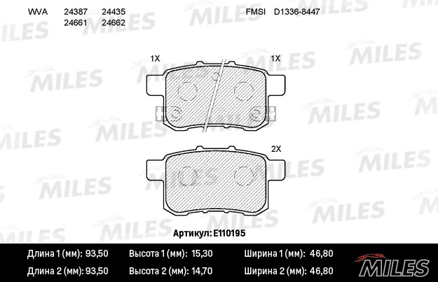 E110195 MILES Колодки тормозные задние (без датчика) (Смесь Semi-Metallic) (HONDA ACCORD VIII