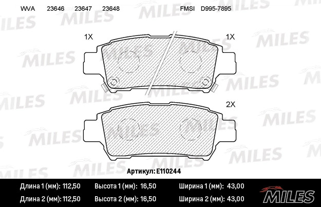 E110244 MILES Колодки тормозные задние (без датчика) (Смесь Semi-Metallic) (TOYOTA AVENSIS VER