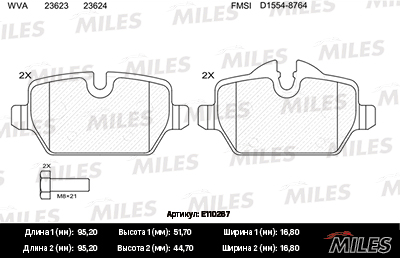 E110267 MILES Колодки тормозные задние (без датчика + болты) (Смесь Semi-Metallic) (BMW E81/E8