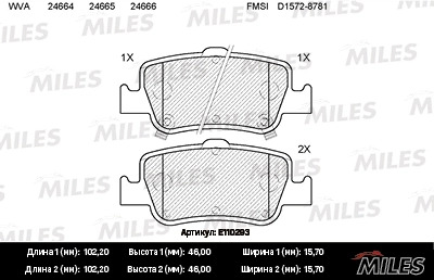 E110293 MILES Колодки тормозные задние (без датчика) (Смесь Semi-Metallic) (TOYOTA AURIS 1.33-