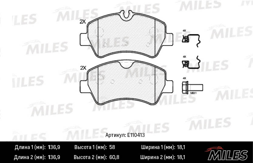 E110413 MILES Колодки тормозные задние (Смесь Semi-Metallic) FORD TRANSIT 14-/CUSTOM 12- (TRW