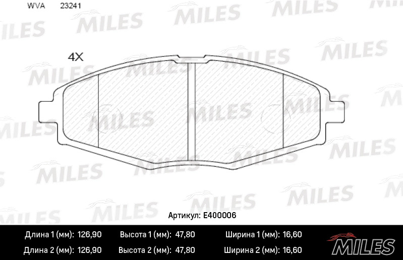 E400006 MILES Колодки тормозные передние (без датчика) (Смесь Low-Metallic) DAEWOO NEXIA/LANOS